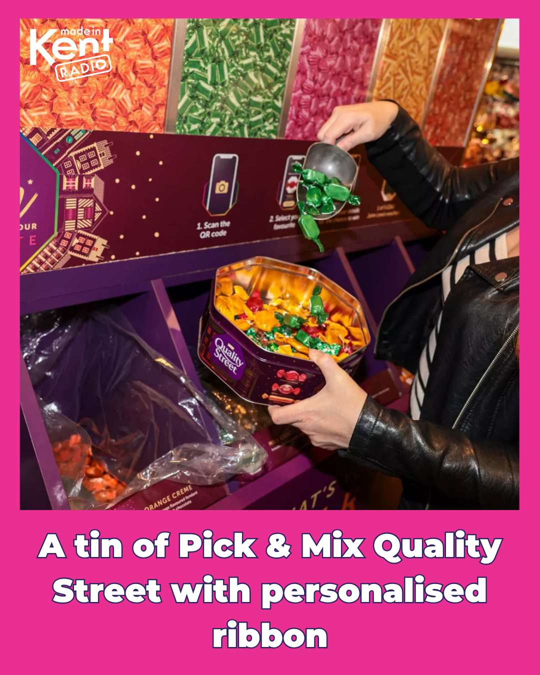 🍬 A personalised tin of Quality Street with ribbon